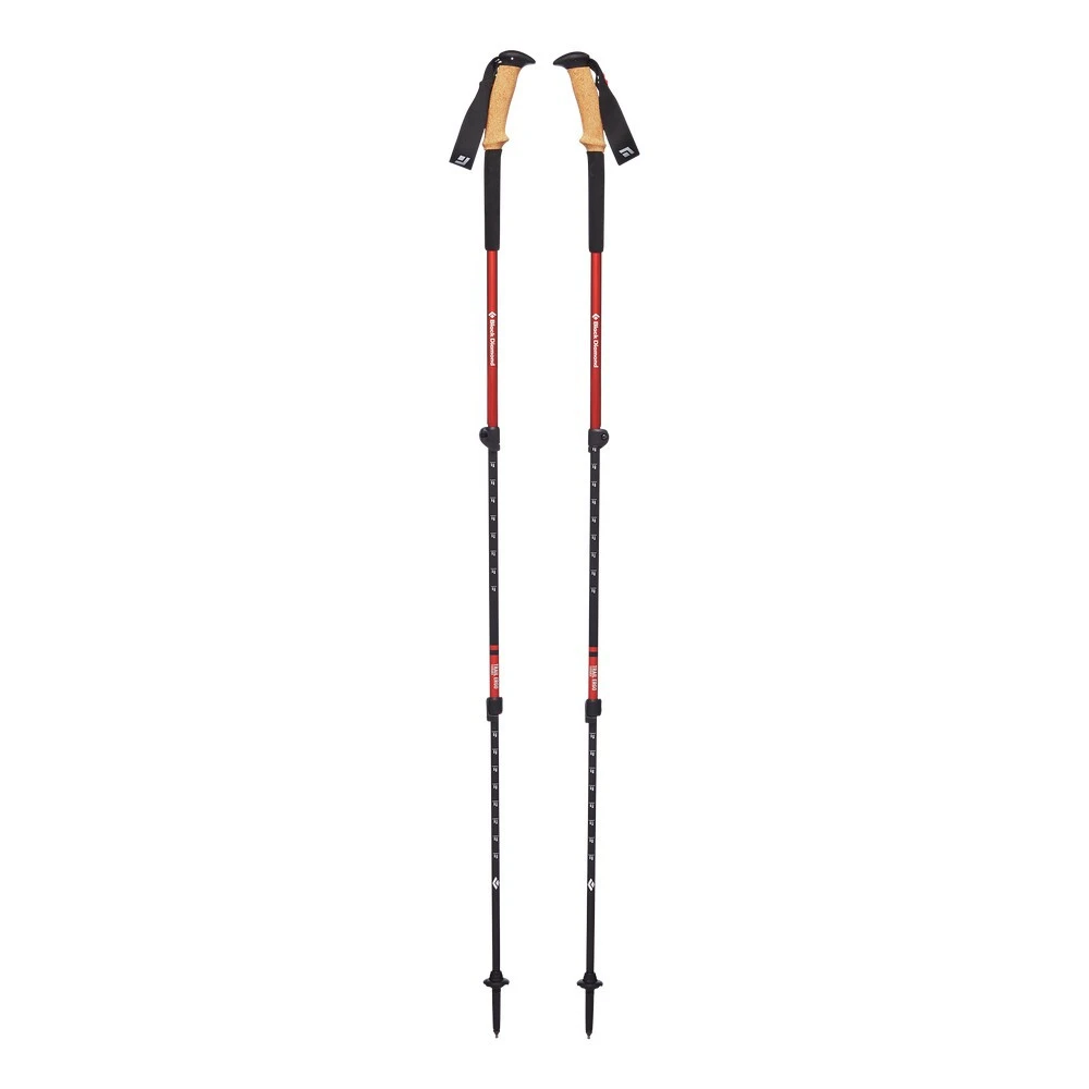 Bâtons télescopiques en aluminium à 3 brins de faible encombrement une fois pliés, 69 centimètres seulement. Les deux réglages FlickLock permettent un ajustement complet et rapide. Les tubes sont gradués pour un réglage précis.