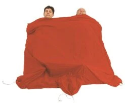 A deux le Bivibag s’utilise comme sac de bivouac étanche. Les trois ouvertures au fond évitent la formation de condensation. L’ouverture du haut se maintient ouverte en enfilant par exemple un bâton dans la sangle. Seul, il se prête bien à un usage poncho.