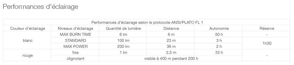 - 3 niveaux d’éclairage blanc et une lumière rouge permettant de préserver la vision nocturne