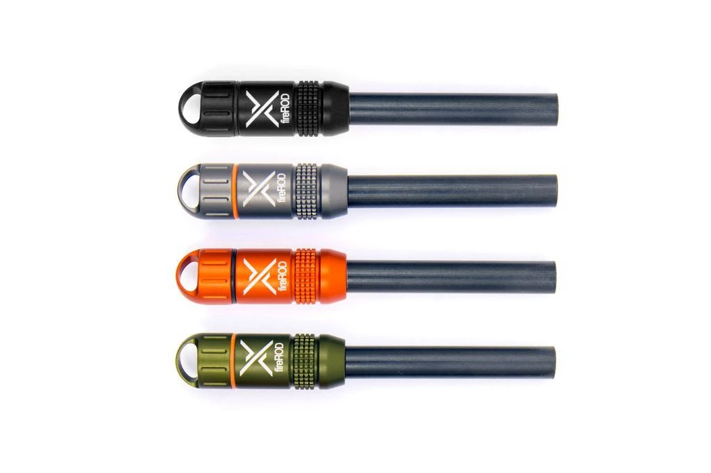 La tige en ferrocérium FireRod de marque américaine Exotac est légère, compacte tout en offrant une bonne prise en main. Dans l’embout se cache une petite capsule permettant de stocker des allume-feux QuickLight. Avec l’aide d’un couteau utilisé comme grattoir et d’amadous, elle permet d’allumer par friction un feu dans toutes les conditions météo.