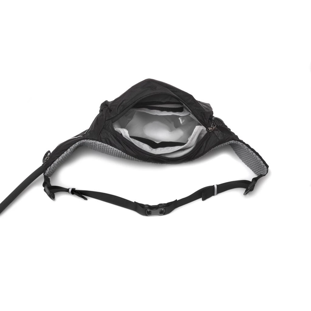La ceinture possède une poche principale de 4 litres et un compartiment isolé pouvant contenir une poche à eau 1,5 litre (fournie) en le gardant à la bonne température plus longtemps. Il y a également un tuyau isolé détachable et pouvant être utilisé des 2 cotés. Le réservoir peut être retiré, ce qui le rend très facile à laver.